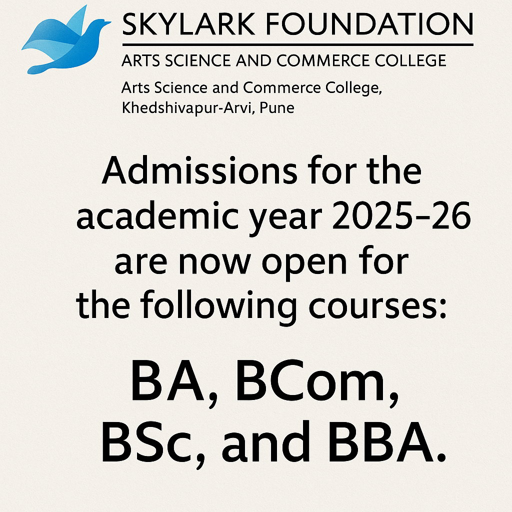 Skylark Foundation’s Arts, Science, and Commerce College, Khedshivapur-Arvi, Pune, was established with the noble objective of becoming a premier center for education. Our vision is to deliver quality education that bridges the gap between rural and urban youth, empowering them to excel in both personal and professional domains.